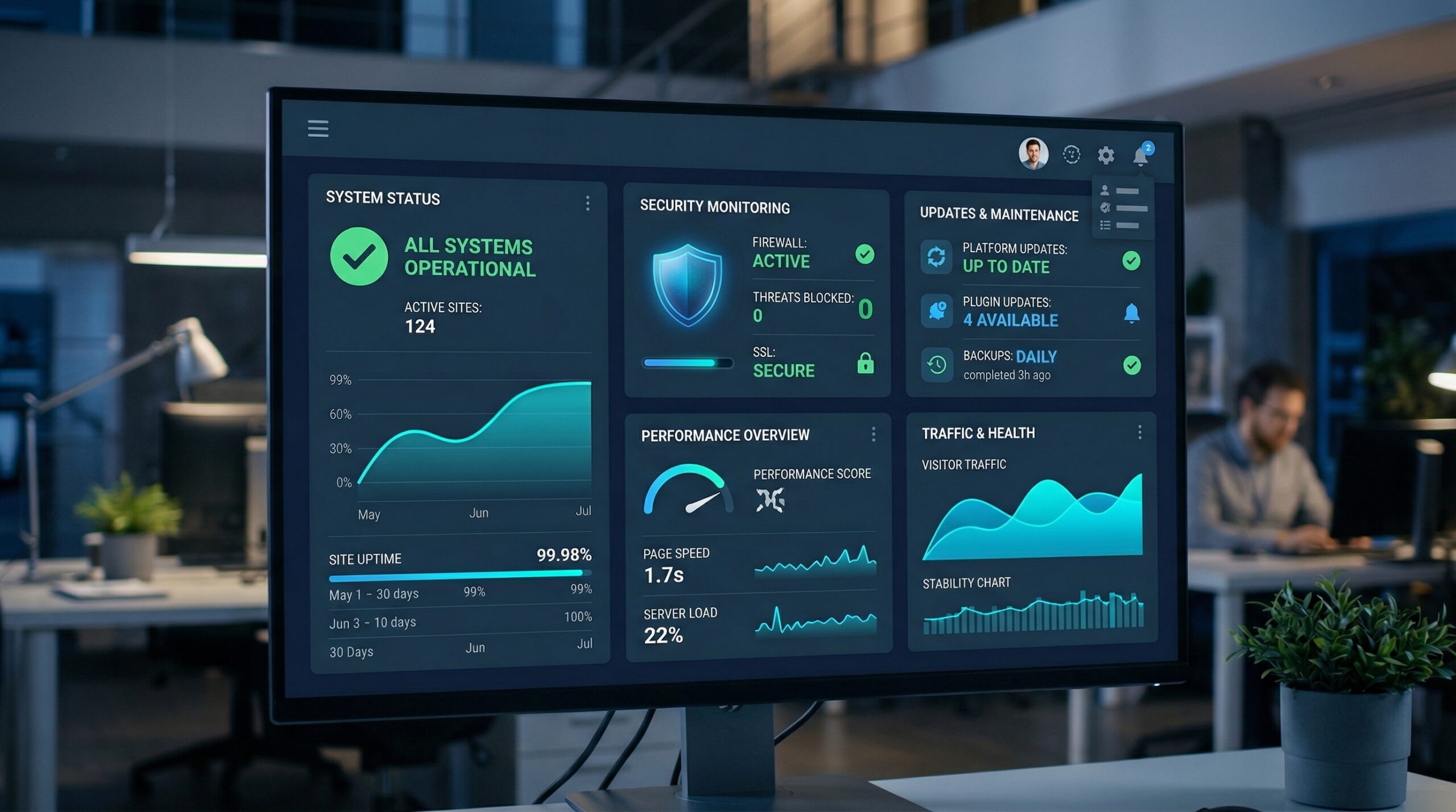 Updates, Backups, Sicherheitschecks – all das läuft im Hintergrund, ohne dass Sie sich aktiv darum kümmern müssen. Gleichzeitig haben Sie die Sicherheit, dass im Fall eines Problems schnell reagiert wird.